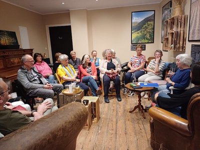 Mit einer Auswahl aus ihrem Band von sechs nachdenklichen und vergnüglichen Stories nahm Christel Baumgart ihre Gäste mit auf eine kurzweilige Reise mit Barbara und Viktor. Immer schneller und immer geradeaus - wohl jede Zuhörerin und jeder Zuhörer litt mit der Ich-Erzählerin, die ihren Käfer für immer waghalsigere Fahrversuche der Freundin auf abwegigen Feldwegen zur Verfügung stellte. Und atmete auf, als diese Versuche glücklicherweise für alle Beteiligten (inklusive Käfer) ein glimpfliches Ende nahmen. Im Kontrast dazu die Geschichte von Viktor, spannend erzählt und im Vortrag mit Soundeffekten untermalt, die nach einem trügerisch entspannten Start subtil auf ein bitterböses Ende zusteuerte, das nachwirkt. Nur soviel sei gesagt: Vorsicht mit unbekannten Badeessenzen!
