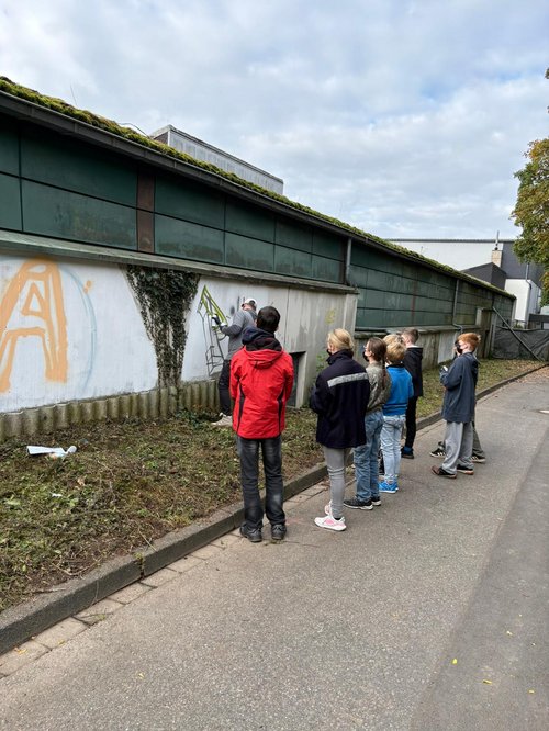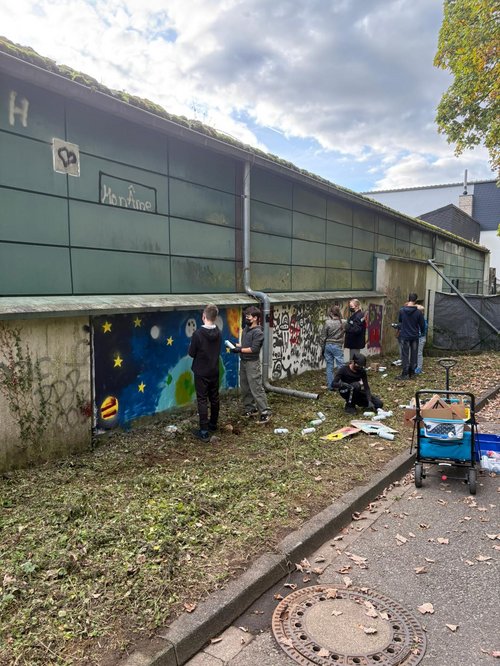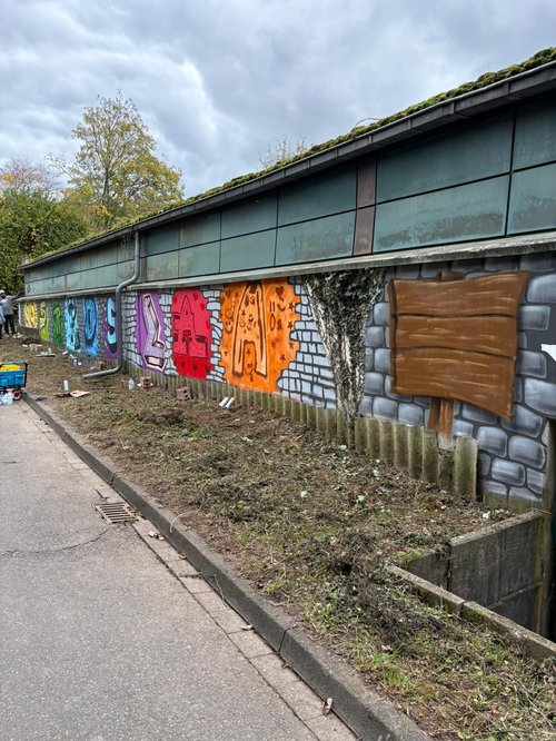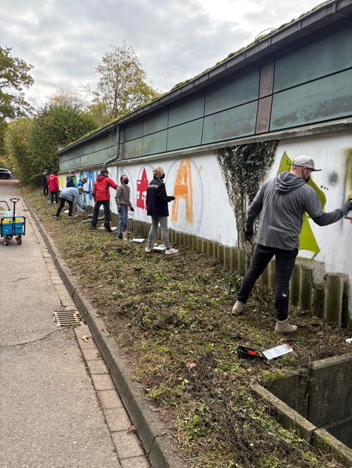 Ein besonderer Moment war für alle, als sie nach Fertigstellung der Hauptfläche die restliche Wand frei gestalten durften – ganz ohne Vorgaben. „Da hat man gespürt, wie viel Selbstvertrauen und Stolz in kurzer Zeit gewachsen sind", so Lohr.